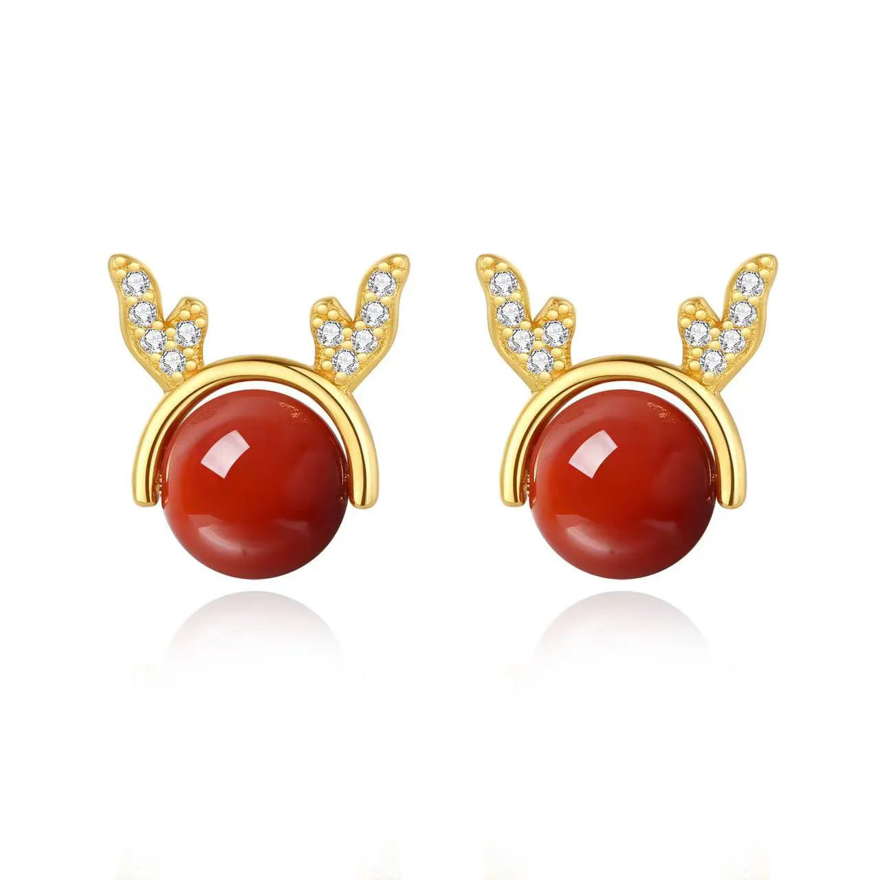 Dragon Zodiac 925 Silver Red Agate Earrings - Prosperity And Fortune
